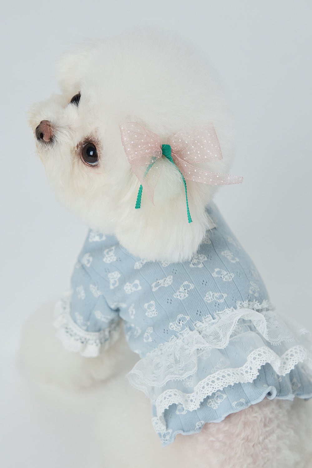 ボリューム感のあるレースを二重につけて可愛くて可愛い姿を演出します。