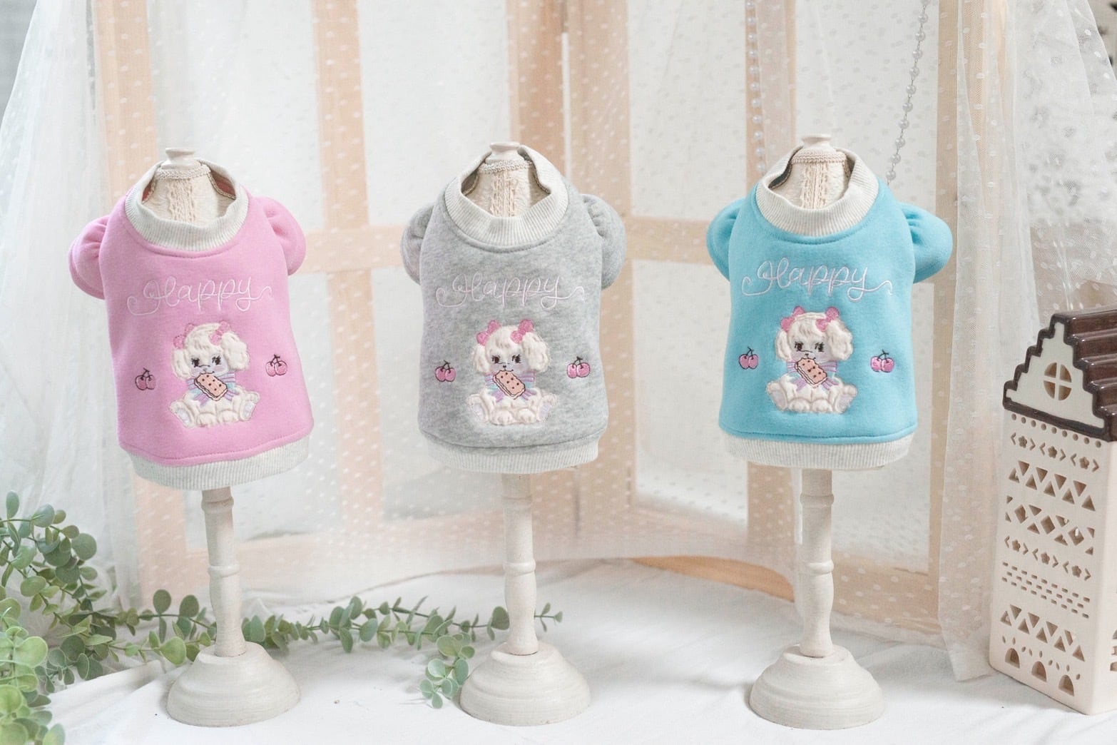 ピンク、グレー、ブルーの 3 色展開で、暖かくてスタイリッシュな外観が大好きな小型犬に