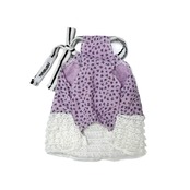 紫色の花柄とレースフリルが調和した