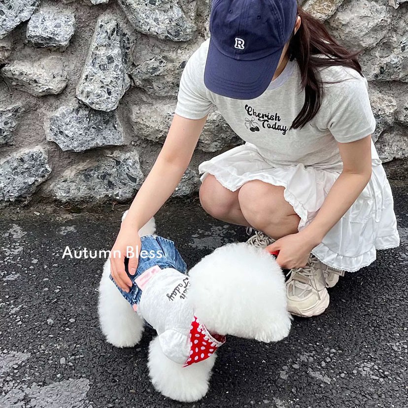 わんちゃん用には、アクセサリーを チェリーリボンヘアピン または ドットバンダナ から