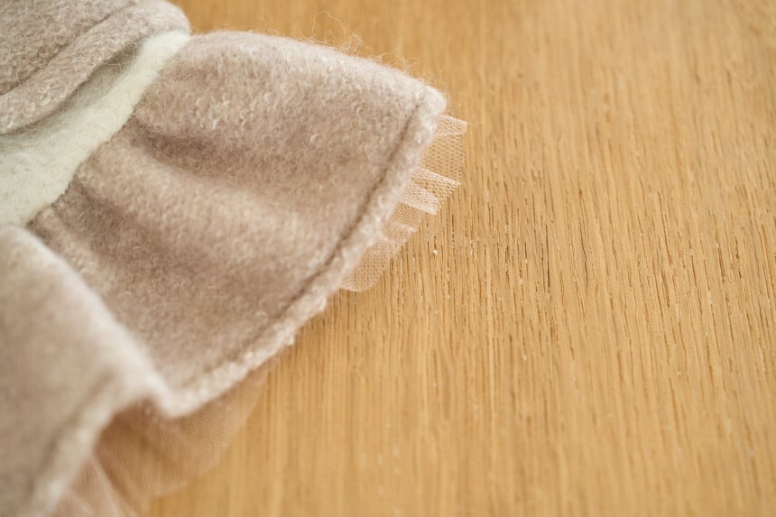 既存のウール生地のように硬くなく柔らかく、ニットの底のようになっており、
