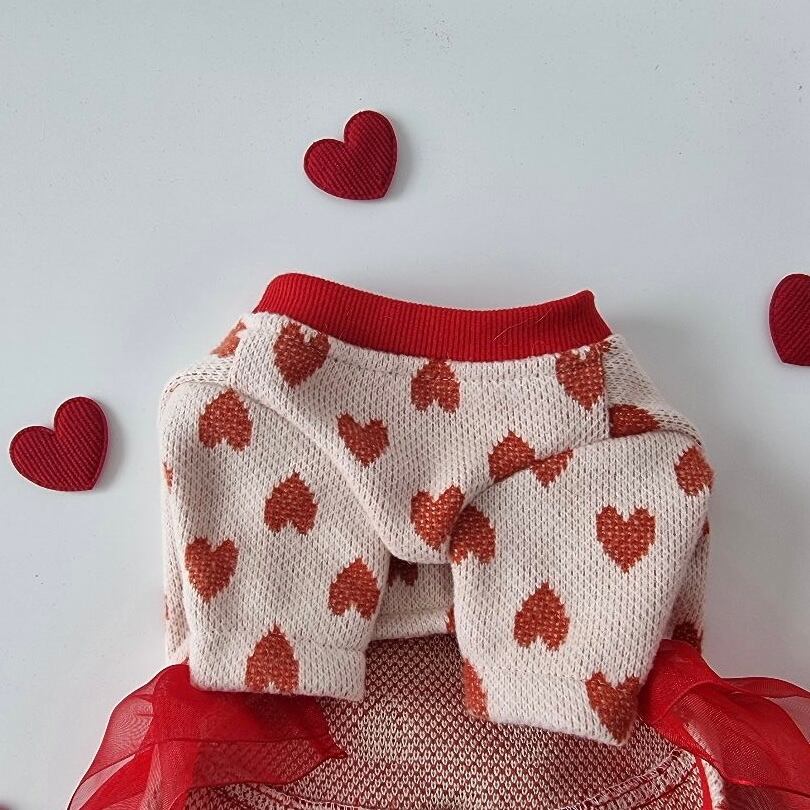 たっぷり散りばめられたハート柄と、ふんわり可愛いシルエットで